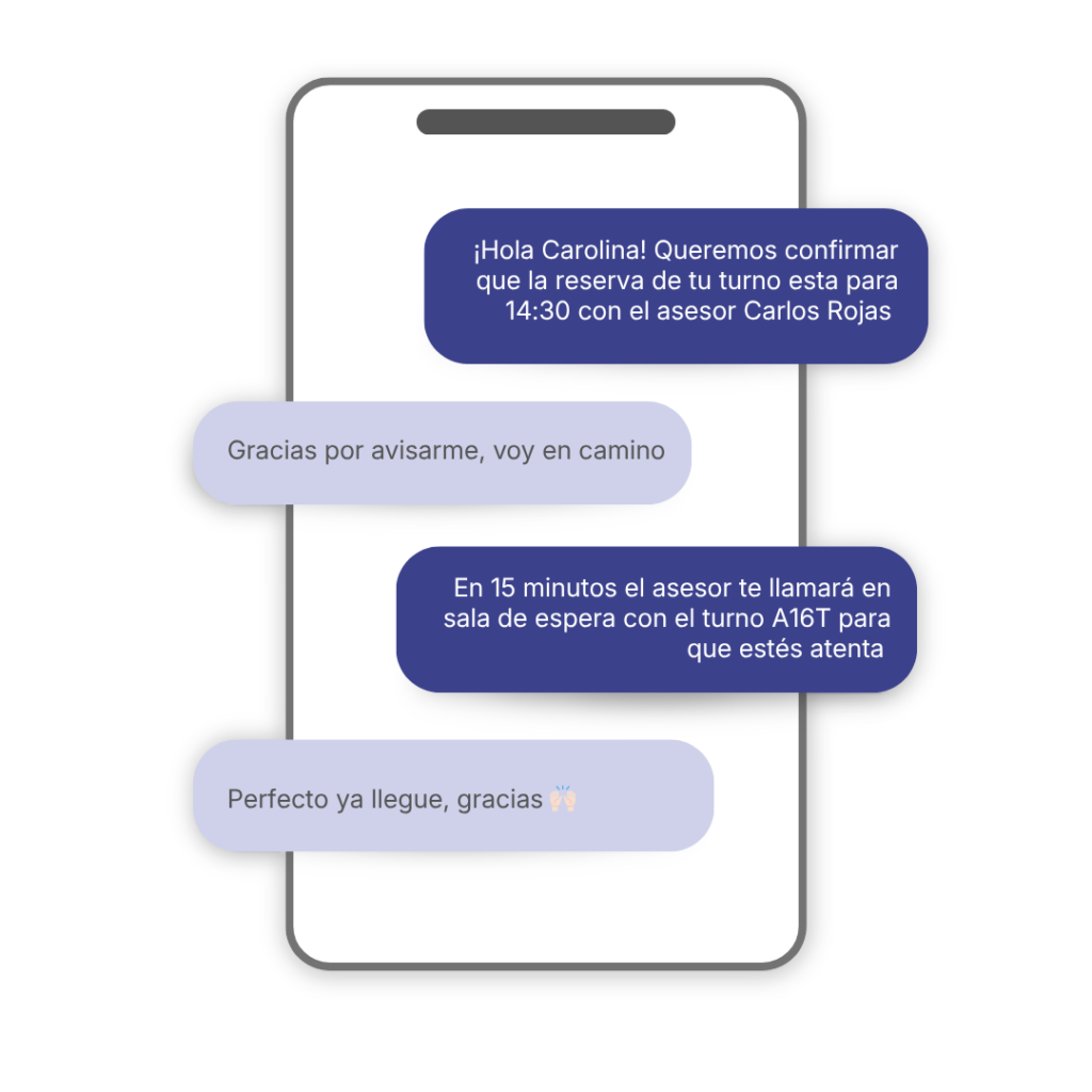 Desde la solicitud del turno hasta la atención final, cada paso está diseñado para ser fluido. Los clientes pueden gestionar sus turnos desde cualquier dispositivo sin necesidad de apps adicionales.